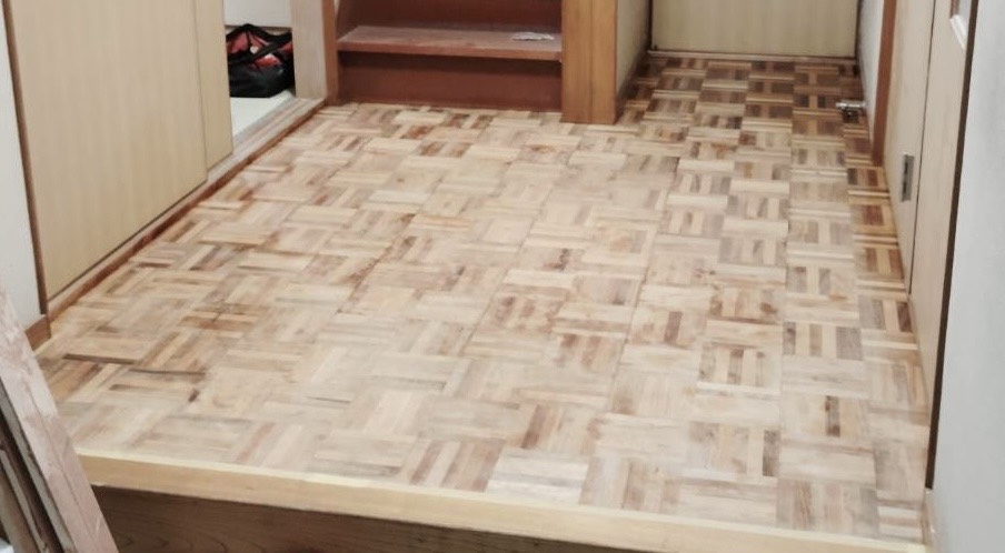 1. 経年劣化した玄関床の再生
