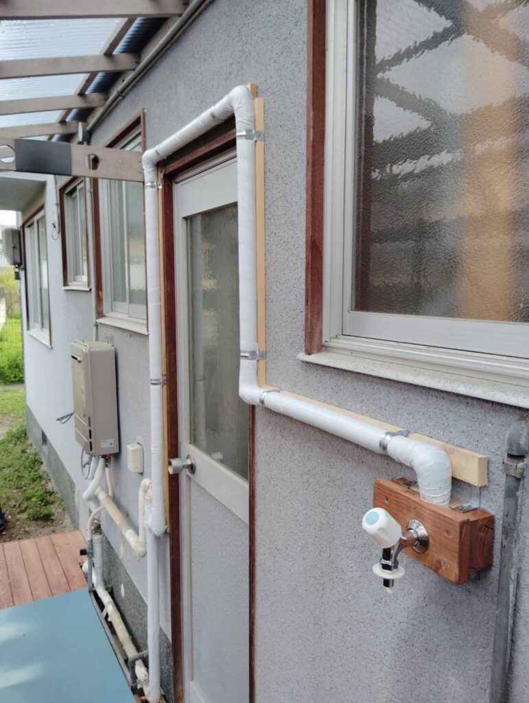 古い家では、洗濯機置き場が不便な場所にあったり、サイズが合わなかったりすることが多々あります。 今回のプロジェクトの締めくくりとして、水道の配管位置を根本から変更し、現代の洗濯機が最も使いやすい位置に設置できるよう調整しました。